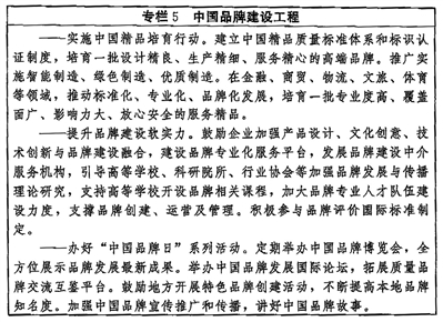 ——品牌建設取得更大進展。品牌培育、發展、壯大的促進機制和支持制度更加健全,品牌建設水平顯著提高,企業爭創品牌、大眾信賴品牌的社會氛圍更加濃厚,品質卓越、特色鮮明的品牌領軍企業持續涌現,形成一大批質量過硬、優勢明顯的中國品牌。